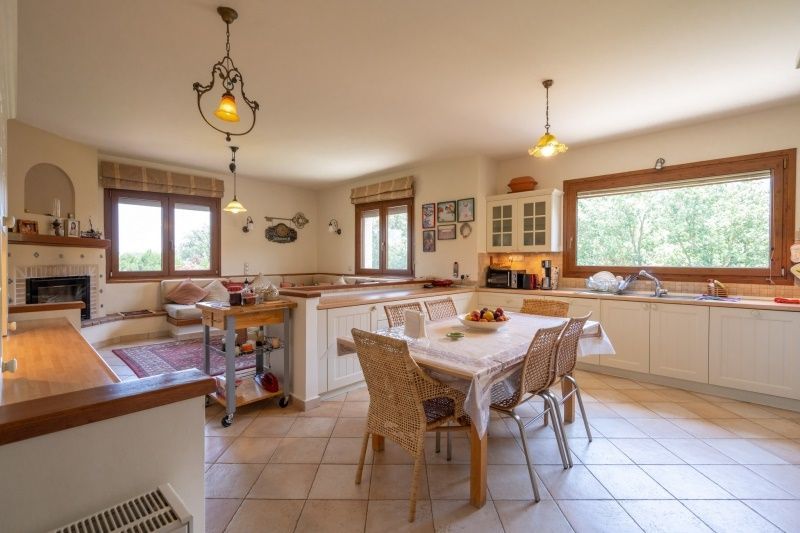 Μεταξύ Μελισσοχωρίου και Ωραιοκάστρου που απέχει 17χλμ από το κέντρο της Θεσσαλονίκης διατίθεται προς πώληση εξαιρετικό πετρόκτιστο κτίσμα 400τ.μ σε αγροτεμάχιο 5 στρεμμάτων.Είναι δύο ανεξάρτητες κατοικίες που λειτουργούν και ως μία ενιαία .Είναι κατασκευασμένη το 2006 με τα καλύτερα υλικά. και αποτελείται από 6 υπνοδωμάτια (δύο masterbedroom),2 σαλόνια, 2 κουζίνες,4 μπάνια, 1 w.c και αποθήκες. Υπάρχουν δύο dressing room , οργανωμένο γυμναστήριο και κελάρια. Οι κουζίνες παραδίδονται με τις ηλεκτρικές συσκευές. Τα πατώματα είναι από ξύλο και πλακάκι. Τα κουφώματα είναι αλουμινίου στο χρώμα του ξύλου με σίτες. Υπάρχει σύστημα συναγερμού. Για την θέρμανση της κατοικίας υπάρχουν καυστήρες πετρελαίου και pellet ,καθώς και τρία χτιστά τζάκια. Στην κεραμοσκεπή υπάρχει ηλιακός τριπλής ενέργειας.Το ρεύμα είναι τριφασικό νυχτερινό. Ο εξωτερικός χώρος που είναι σχεδιασμένος από αρχιτέκτονα τοπίου είναι διαμορφωμένος με γρασίδι, καλλωπιστικά δέντρα και φυτά και διαθέτει αποθήκη 25τ.μ.. Υπάρχει αυτόματο σύστημα ποτίσματος και γίνεται από γεώτρηση. Υπάρχει πισίνα 50τ.μ βραχόκηπος και τεχνητός καταρράκτης. Ο κλειστός χώρος στάθμευσης είναι 60τ.μ και χωράει τρία αυτοκίνητα.