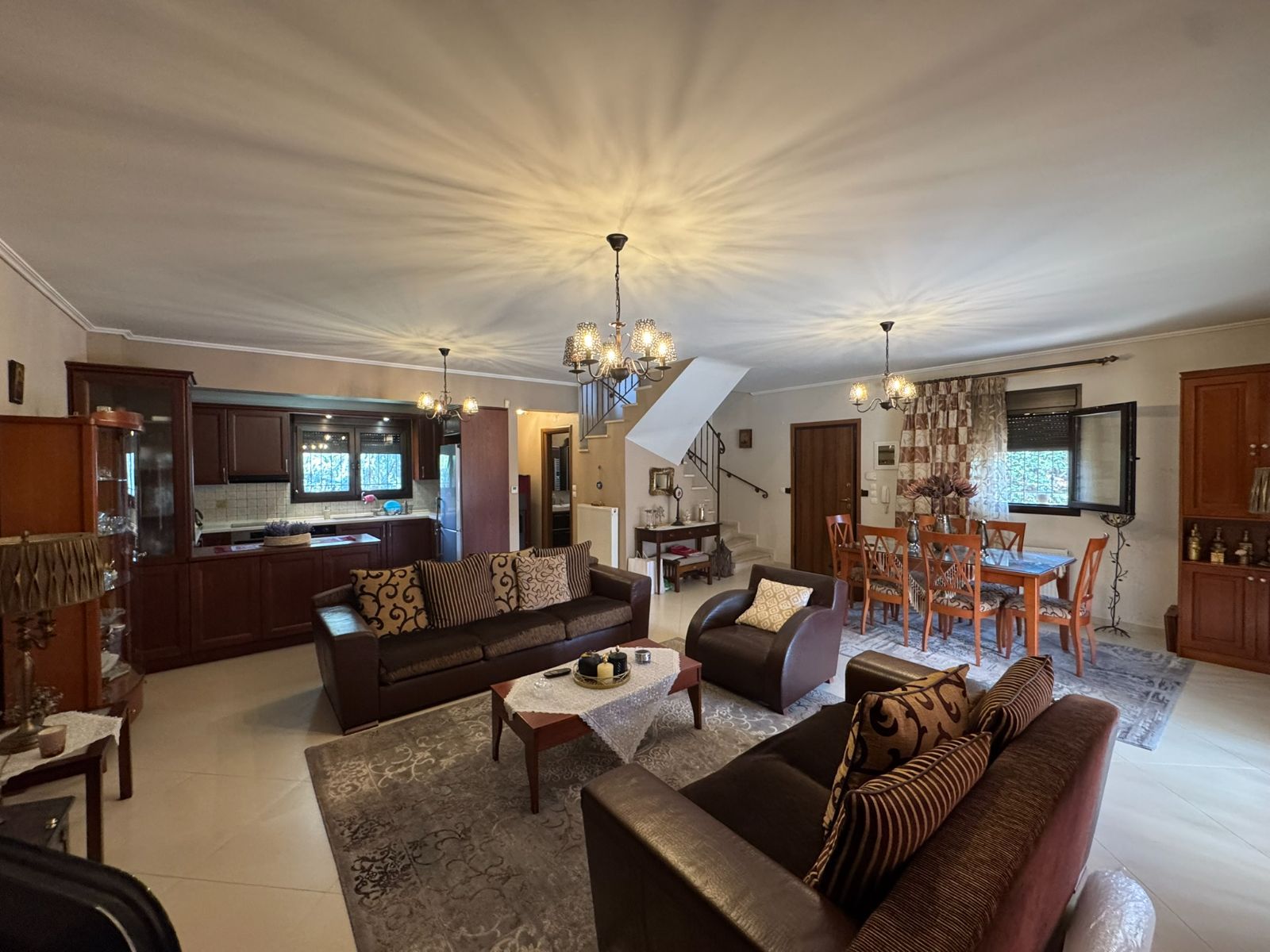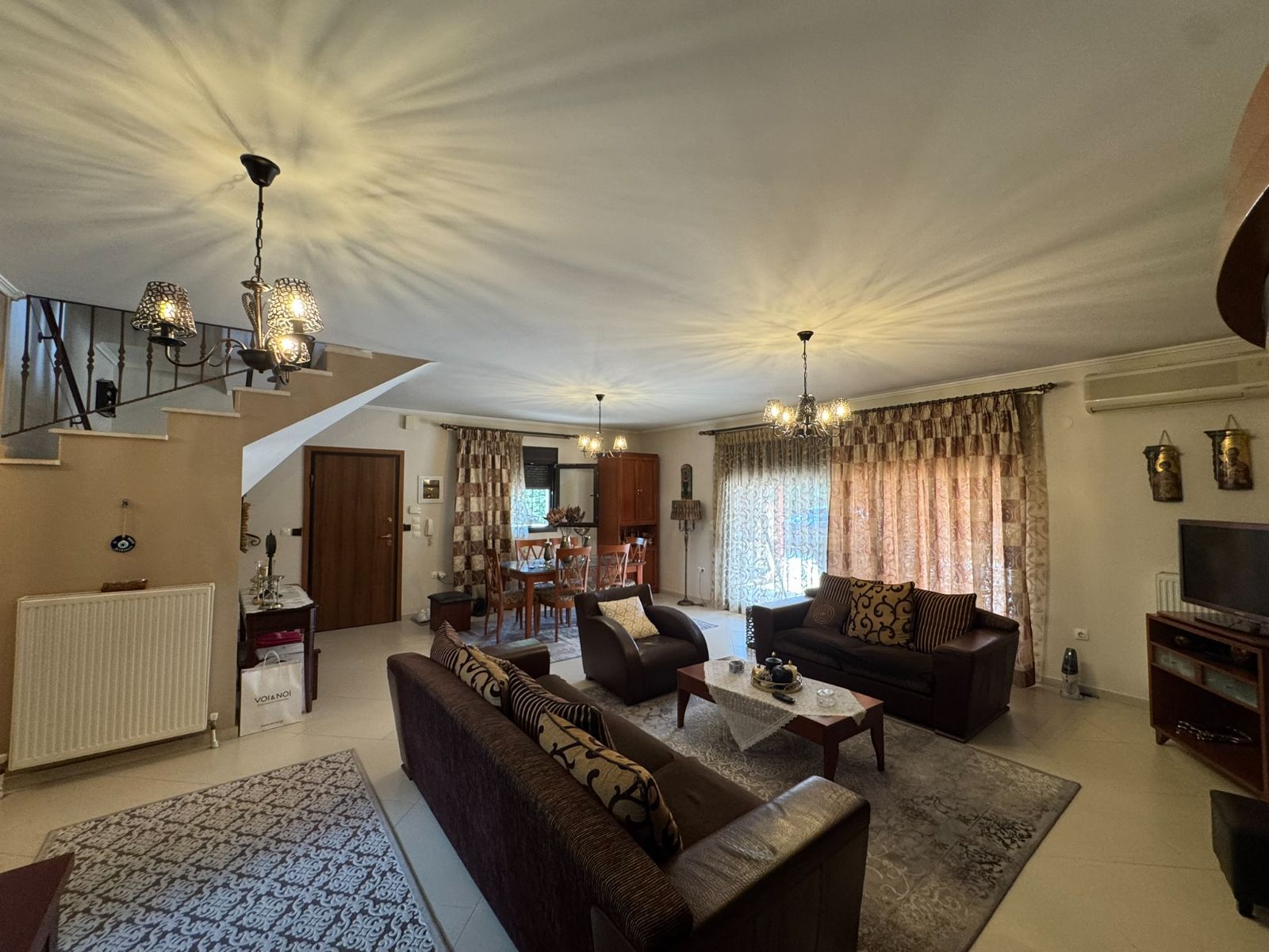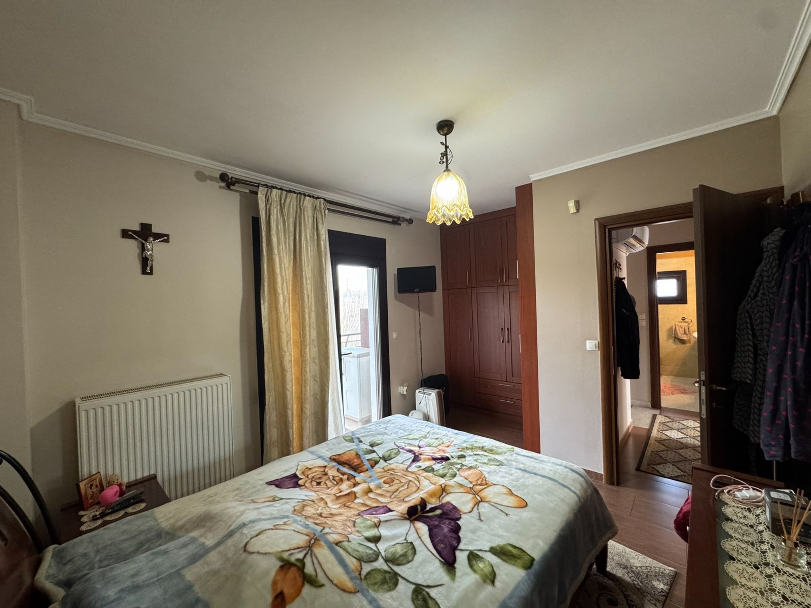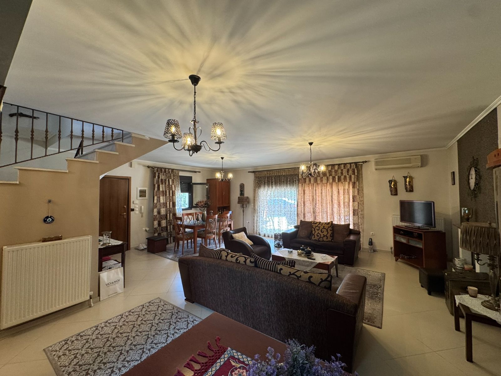 Διατίθεται προς πώληση διώροφη κατοικία 130τ.μ. με ιδιωτικό κήπο 600τ.μ.Αποτελείται από τρία υπνοδωμάτια,σαλόνι,κουζίνα,δυο μπάνια και αποθήκη μέσα στη στέγη.Η πόρτα είναι ασφαλείας,θωρακισμένη,τα κουφώματα συνθετικά στο χρώμα του ξύλου με διπλή υάλωση και σίτες.Τα δάπεδα είναι από πλακάκι.Η κατοικία θερμαίνεται με ατομικό καυστήρα πετρελαίου,υδραυλική σόμπα πέλλετ και τζάκι.Επιπλέον υπάρχουν δυο κλιματιστικά.Οι βεράντες της κατοικίας προστατεύονται με αντιανεμικές ζελατίνες.Στη στέγη τοποθετήθηκε ηλιακός θερμοσίφωνας.Ο κήπος της κατοικίας είναι διαμορφωμένος με δέντρα και φυτά και διαθέτει αυτόματο πότισμα.Τέλος στο πίσω μέρος της οικίας υπάρχουν δυο μικρές αποθήκες.