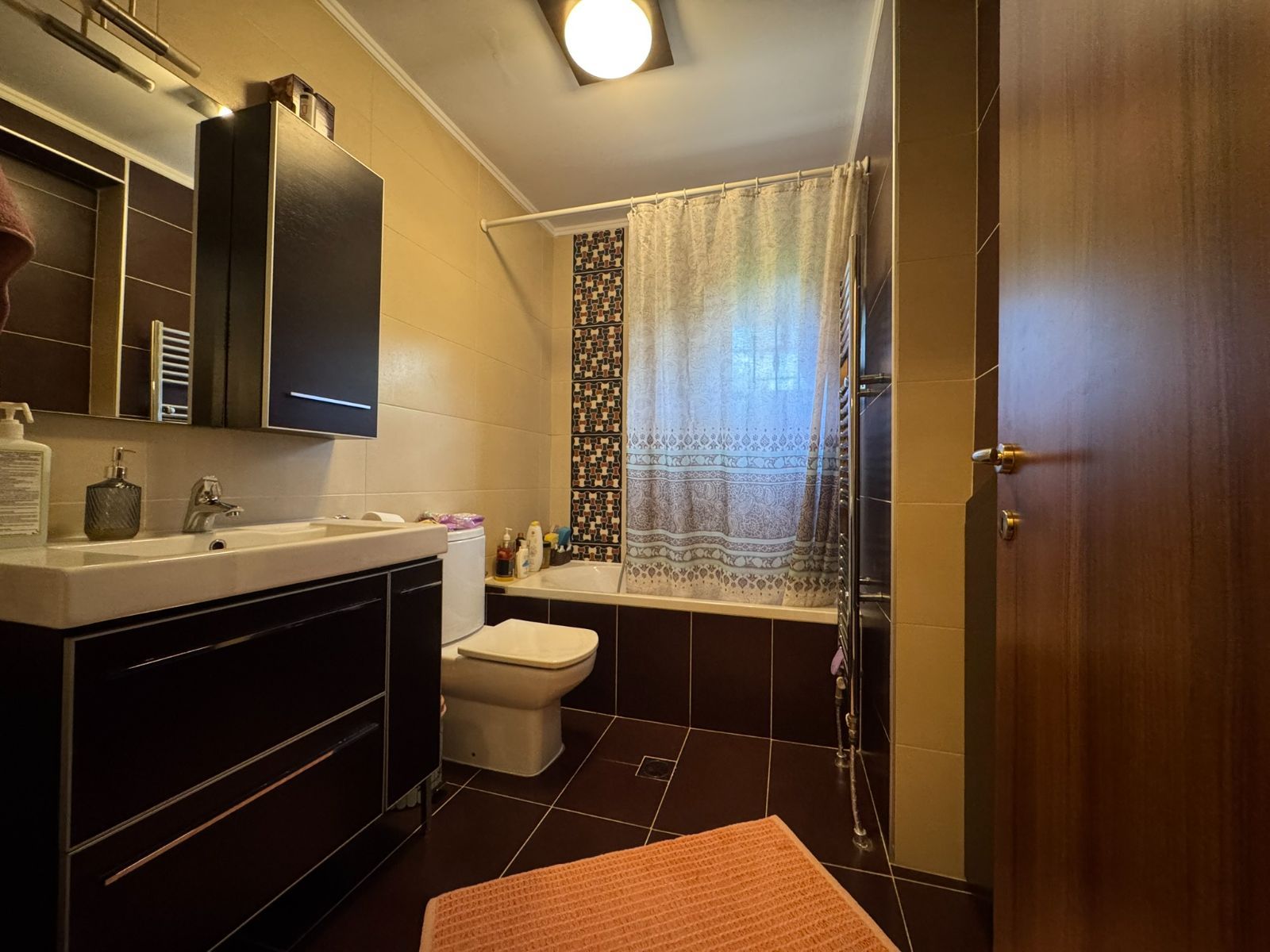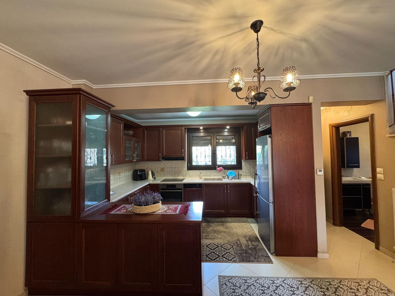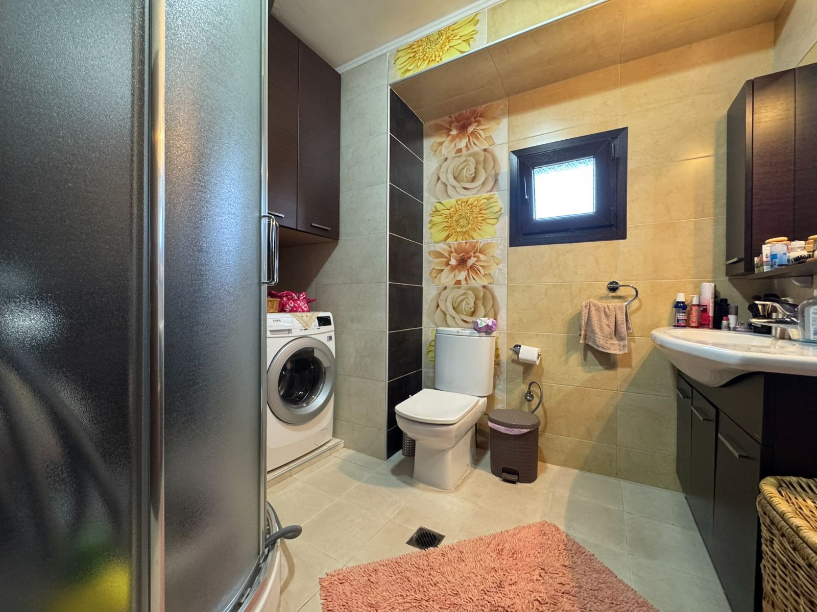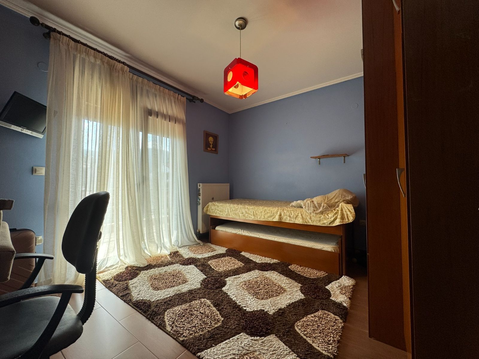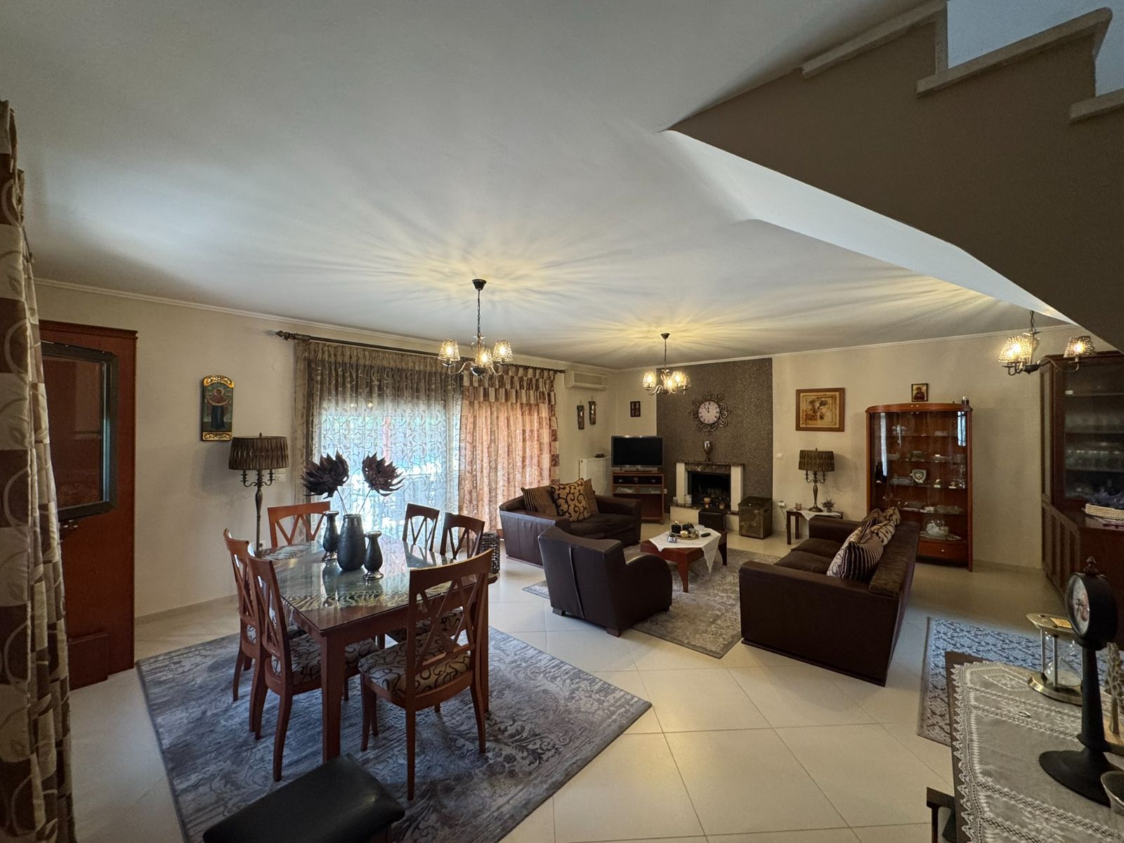 Διατίθεται προς πώληση διώροφη κατοικία 130τ.μ. με ιδιωτικό κήπο 600τ.μ.Αποτελείται από τρία υπνοδωμάτια,σαλόνι,κουζίνα,δυο μπάνια και αποθήκη μέσα στη στέγη.Η πόρτα είναι ασφαλείας,θωρακισμένη,τα κουφώματα συνθετικά στο χρώμα του ξύλου με διπλή υάλωση και σίτες.Τα δάπεδα είναι από πλακάκι.Η κατοικία θερμαίνεται με ατομικό καυστήρα πετρελαίου,υδραυλική σόμπα πέλλετ και τζάκι.Επιπλέον υπάρχουν δυο κλιματιστικά.Οι βεράντες της κατοικίας προστατεύονται με αντιανεμικές ζελατίνες.Στη στέγη τοποθετήθηκε ηλιακός θερμοσίφωνας.Ο κήπος της κατοικίας είναι διαμορφωμένος με δέντρα και φυτά και διαθέτει αυτόματο πότισμα.Τέλος στο πίσω μέρος της οικίας υπάρχουν δυο μικρές αποθήκες.