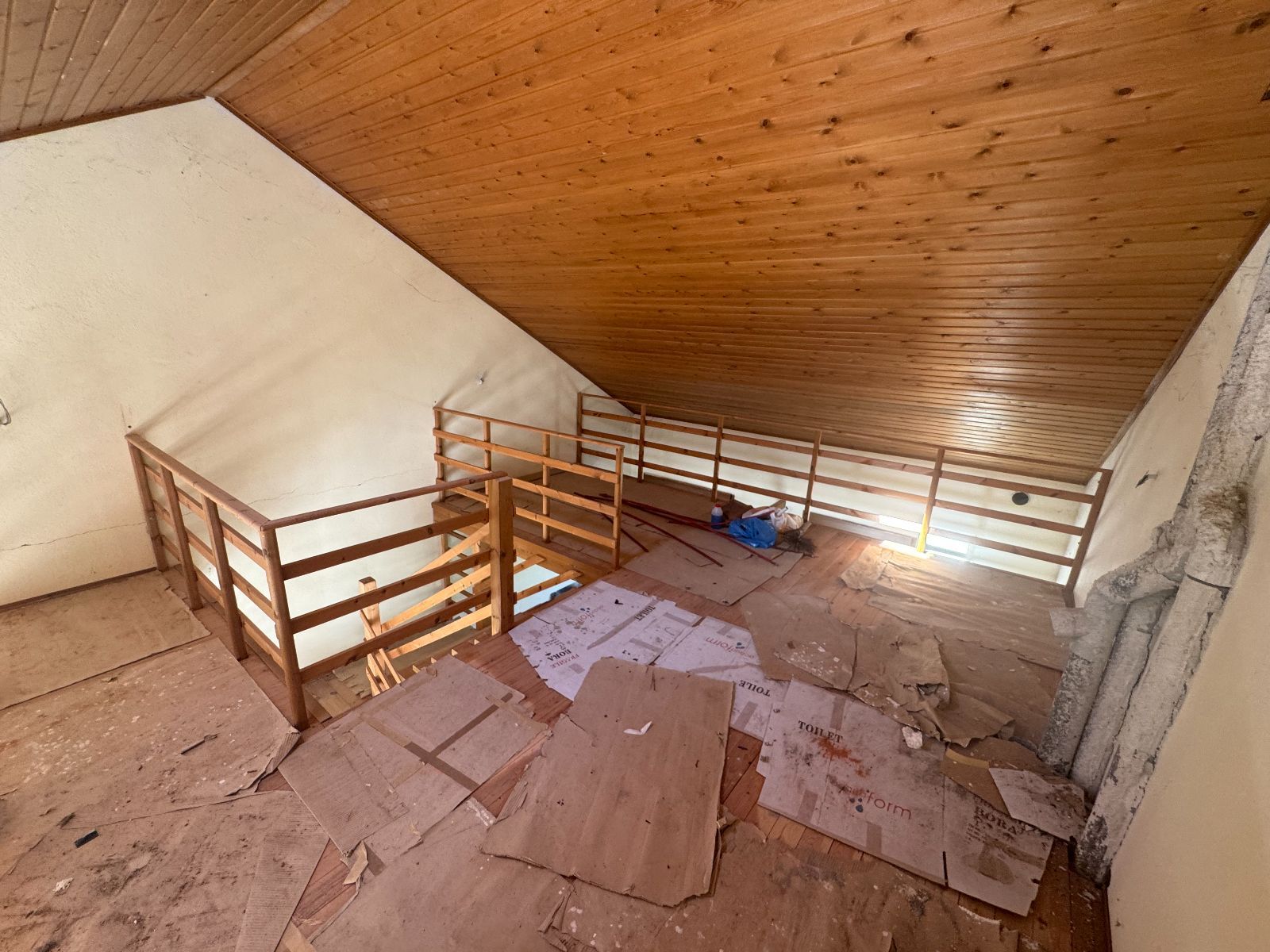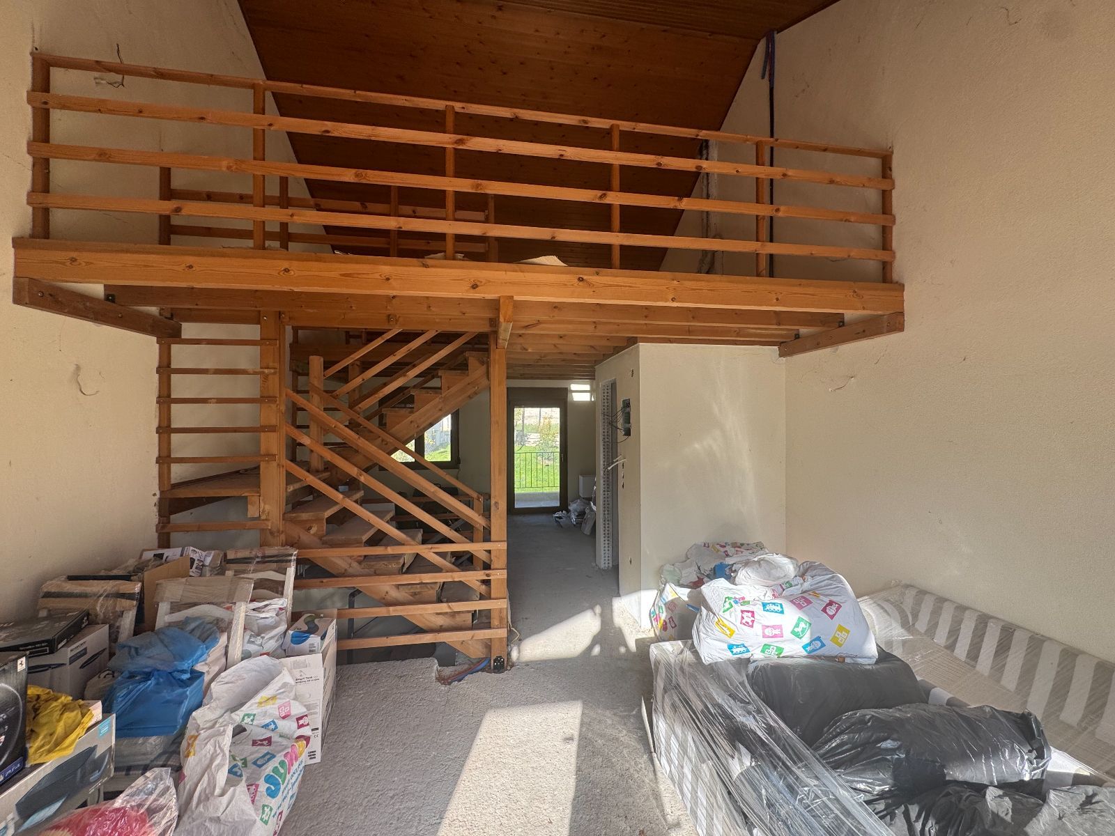 Διατίθεται προς πώληση τριώροφη ημιτελής κατοικία 139τ.μ. με κήπο(αποκλειστική χρήση) 57τ.μ.Αποτελείται από τέσσερα υπνοδωμάτια,δυο σαλόνια,δυο κουζίνες,δυο μπάνια,ένα w.c. και επιπλέον πατάρι-σοφίτα 23,50τ.μ.Η πόρτα εισόδου είναι ασφαλείας,θωρακισμένη στο χρώμα του ξύλου,τα εξωτερικά κουφώματα είναι συνθετικά στο χρώμα του ξύλου με διπλούς υαλοπίνακες.Για την θέρμανση υπάρχει ατομικός καυστήρας πετρελαίου,με ξεχωριστό θερμαστάτη σε κάθε όροφο.Επιπλέον,οι εξωτερικοί τοίχοι είναι διπλοί με 10εκ. θερμομόνωση,η στέγη είναι ξύλινη με 15εκ. θερμομόνωση και τοποθετήθηκε ηλιακός θερμοσίφωνας 125 λίτρων.Η άδεια οικοδομής εκδόθηκε το 2005 και η κατασκευή ξεκίνησε το 2010.Τέλος η αποπληρωμή μπορεί να γίνει με διακανονισμό.